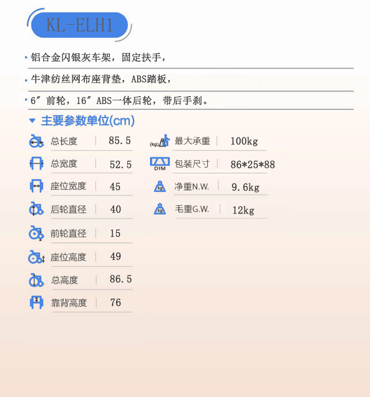 > KL-ELH1兒童功能型輪椅