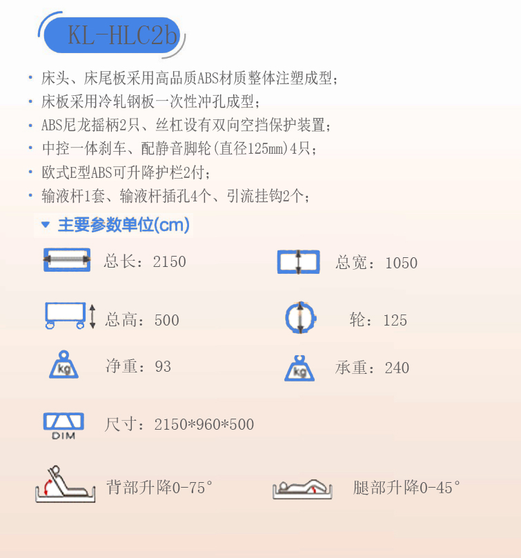 > KL-HLC2b雙搖護理床