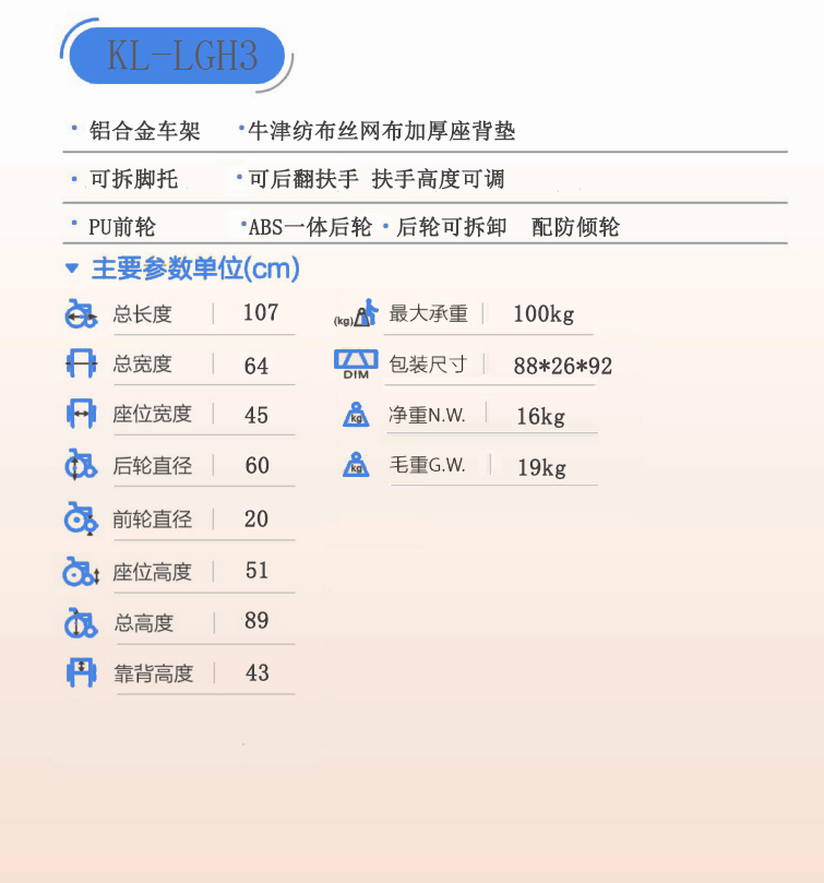> KL-LGH3功能型鋁合金輪椅